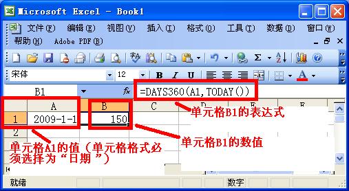 表达式:DAYS360(DATE(年,月,日),DATE(年,月,日))