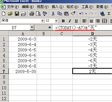 在excel中选定一个单元格中的日期怎样让其快速计算出和今天的相差