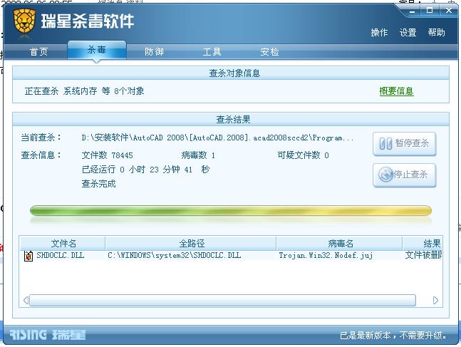 瑞星卡卡安全论坛个人产品讨论区瑞星杀毒软件瑞星杀毒软件2011 6月6日早上杀毒,shdoclc.dll 被删除,你们的被删了吗