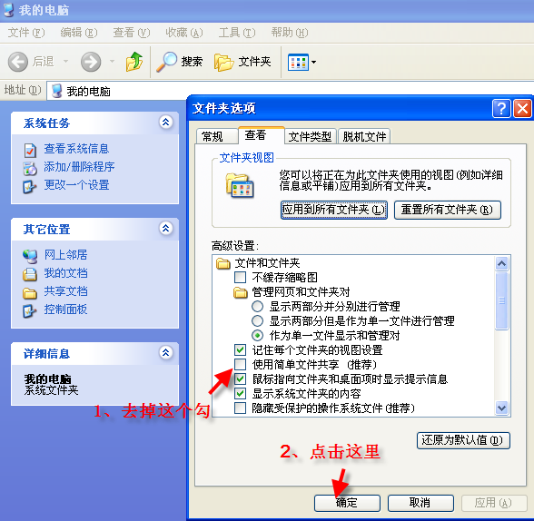 在“文件夹选项”中,须去掉“使用简单文件共享”复选框中的勾: