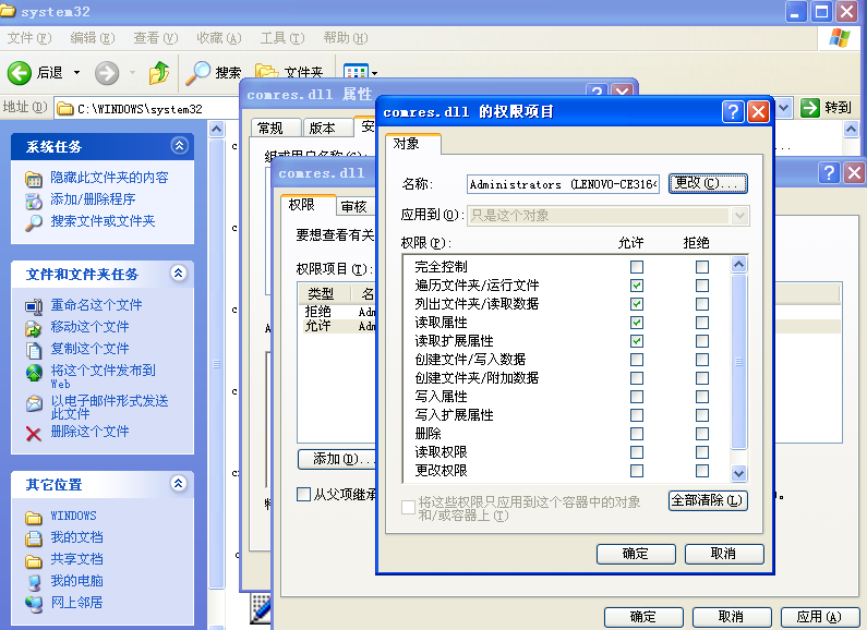 其实这个病毒是有软肋的。NTFS格式的系统,只要用NTFS权限照顾好appmgmts.dll和comres.dlll这两个DLL(见图1-图2),这个病毒就危害不了你的系统。