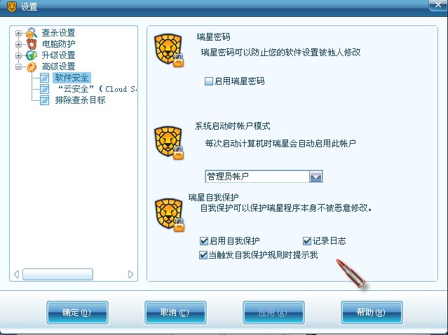 瑞星的默认十分保守,扩展库,启发等模块均未开启建议用户手动开启.