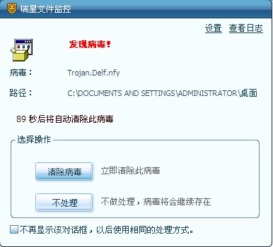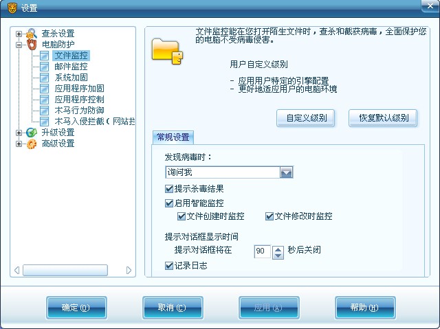 将文件监控设置成发现病毒询问