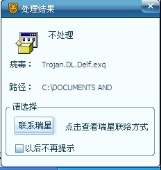我在2楼补上了,文件没有被删除,扫描仍然报毒