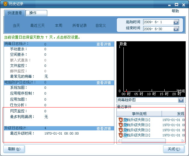 在升级专杀工具的时候,失败了几次,估计是服务器没响应,但是在日志记录却出现了这种问题,日期变为1970-01-01。