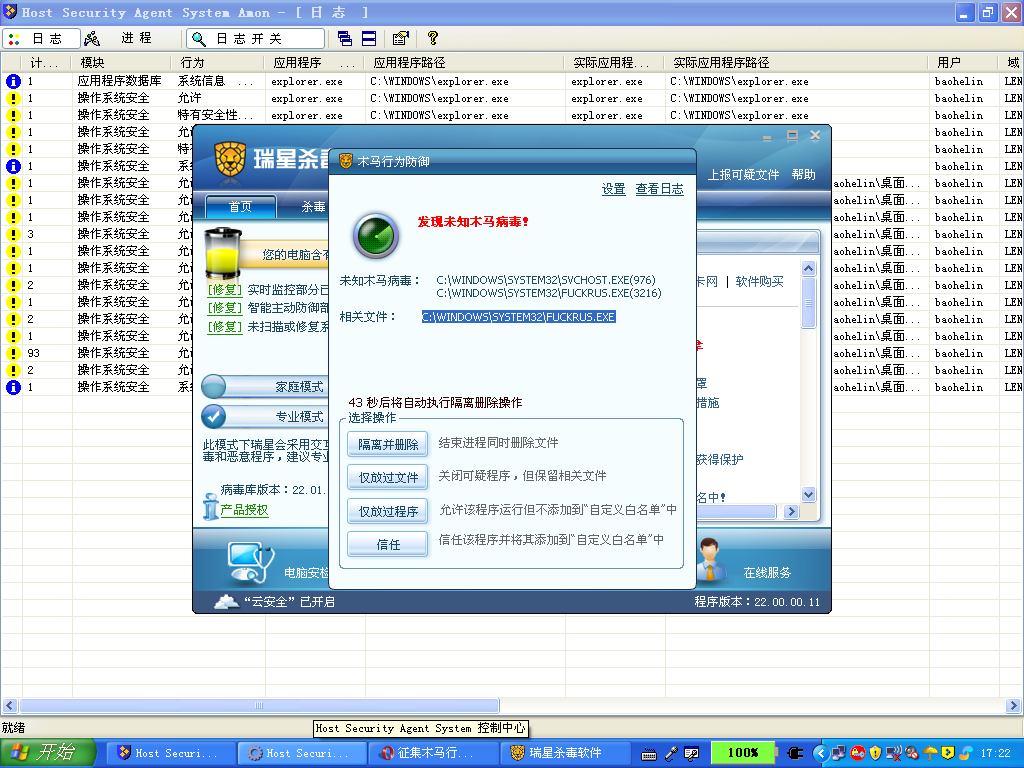 附上瑞星漏掉的病毒程序f u c k r u s . exe(无密码)