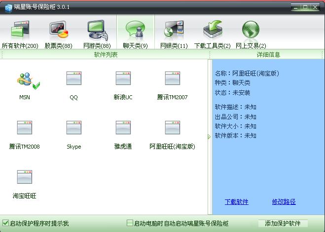 明明我的电脑上已经安装了QQ和阿里旺旺(淘宝版),为什么保险柜显示