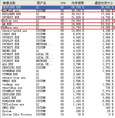 上图为瑞星杀毒软件2010静默时资源占用情况