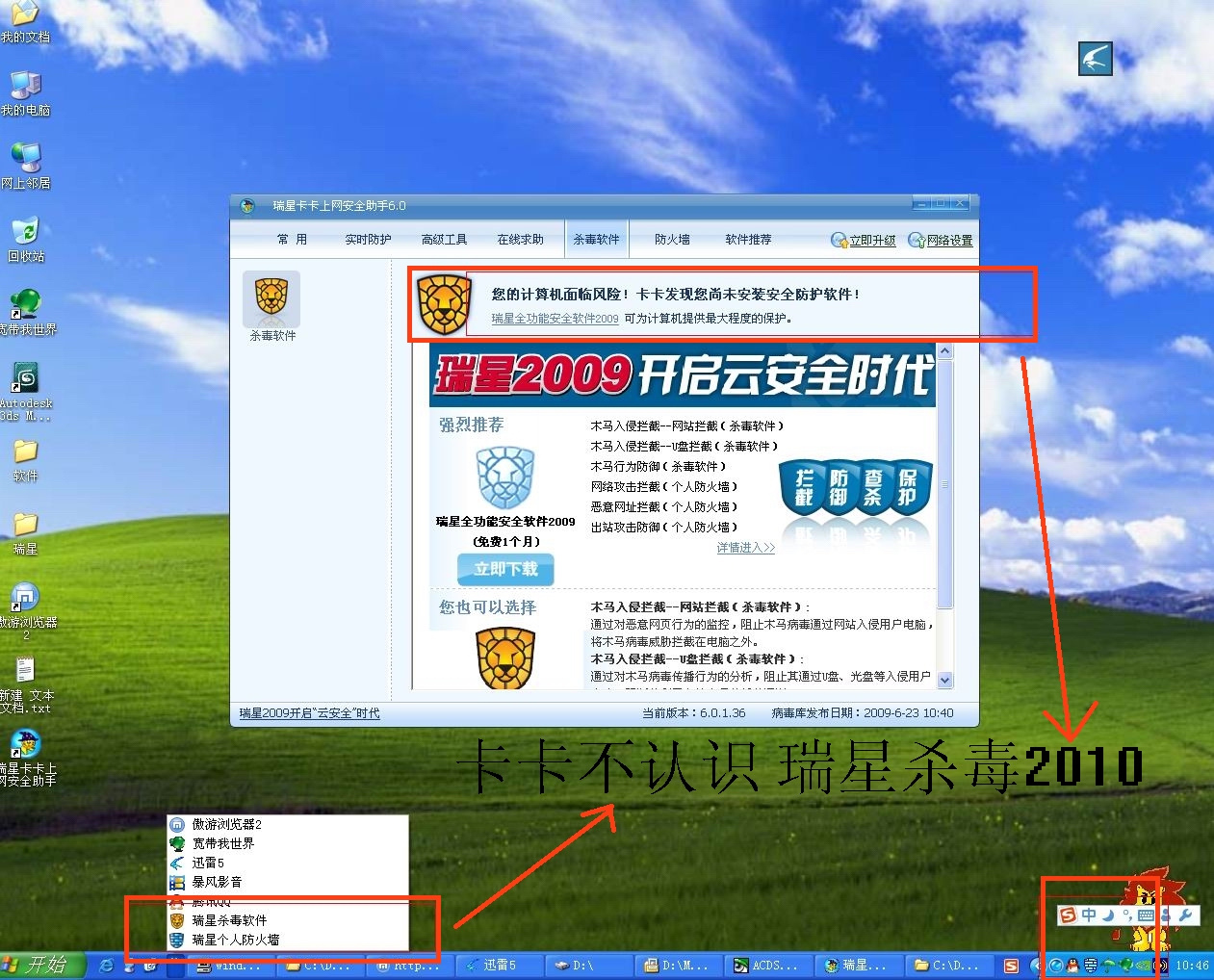 卡卡6.0 不认识 瑞星2010