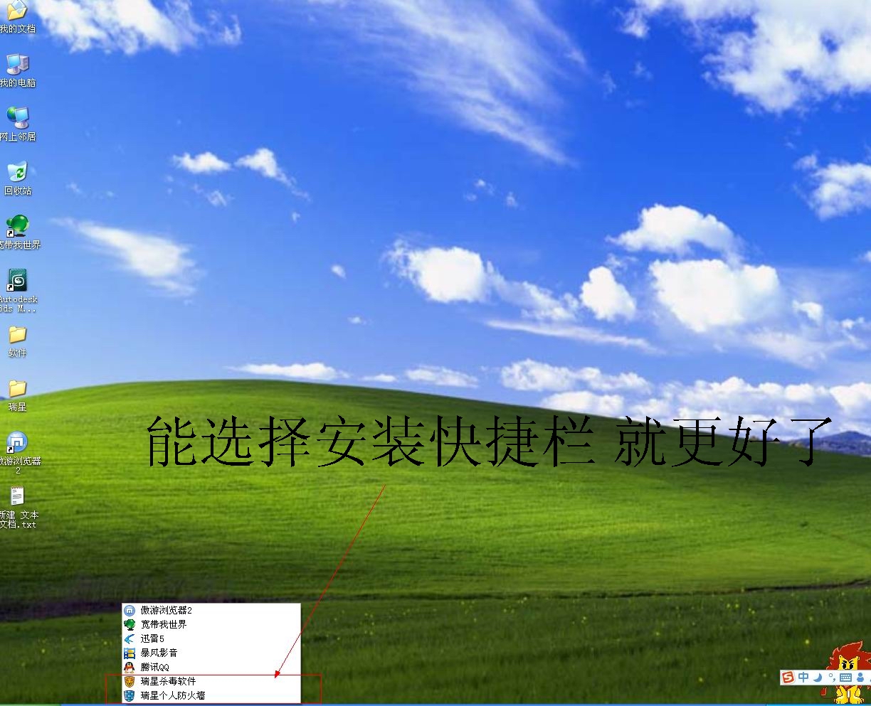 3. 桌面图标和快捷栏图标应该可以选择性安装,而不是现在的默认自动安装, 像我这种提倡桌面简洁的用户,很讨厌别人强制在我的桌面上放置任何东西,我的桌面我做主
