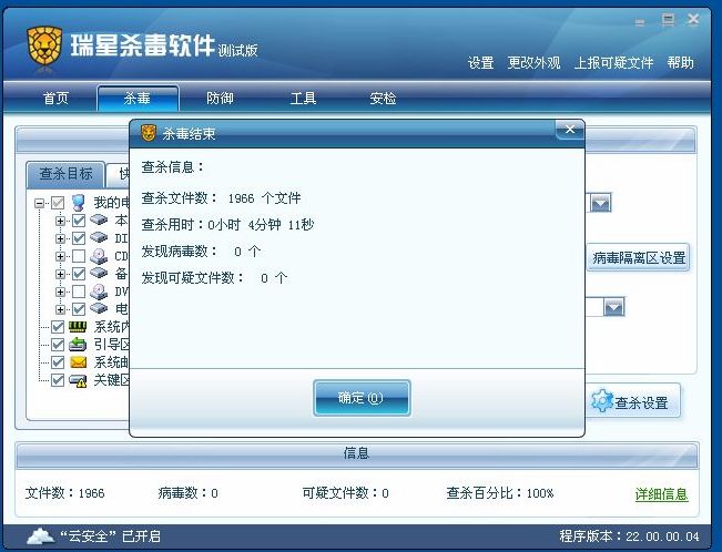 好吧,既来之则安之,杀下毒看看,分别使用了快速和全盘,截图如下: