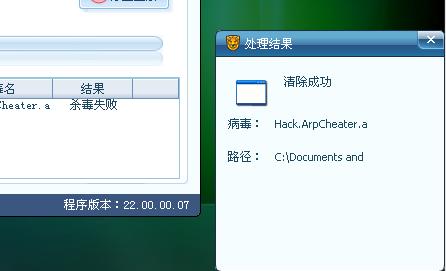 这个我想是瑞星需要改进的地方.一边弹窗提示成功清除.一边显示杀毒失败.到底应以哪里的为准?虽然说清除和删除的概念不同.但到底这个病毒解决了没有用户还是不知道.