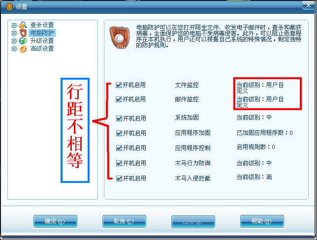 如图所示,用户的自定义级别被分为两行显示,很影响美观,另外几项监控项目的行距也不相等,建议调整!