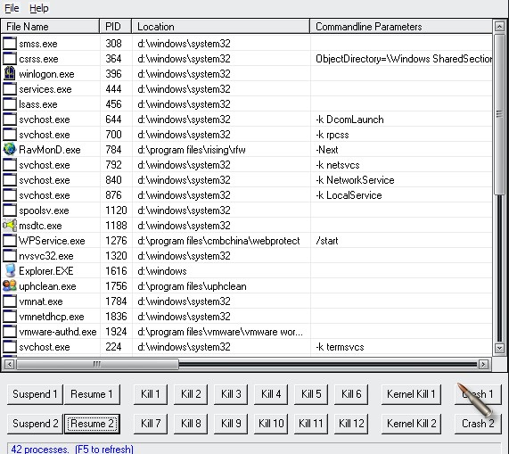 我可轻易的干掉RSTRAY(后果就是系统托盘图标没了),但是RAVMOND则全都很强大的免疫了...
