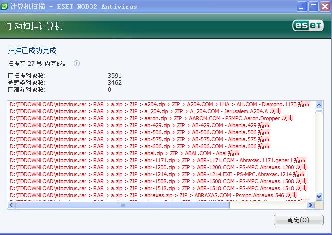 都升级到最新病毒库,检测病毒压缩包,瑞星共扫描