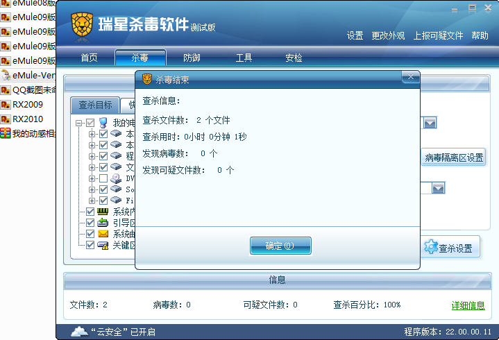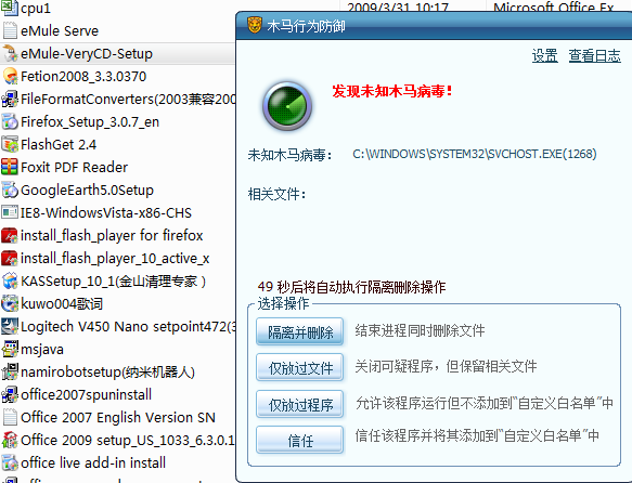 重新安装eMule 的08版,实用一直用开的安装包,提示有木马,惊讶之余用10版扫描,一切正常。不甘心到eMule的官网