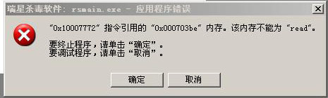瑞星现在这个版本在全盘查杀时,频繁报错,导致无法进行,好像是在查杀OFFICE安装文件时报的,