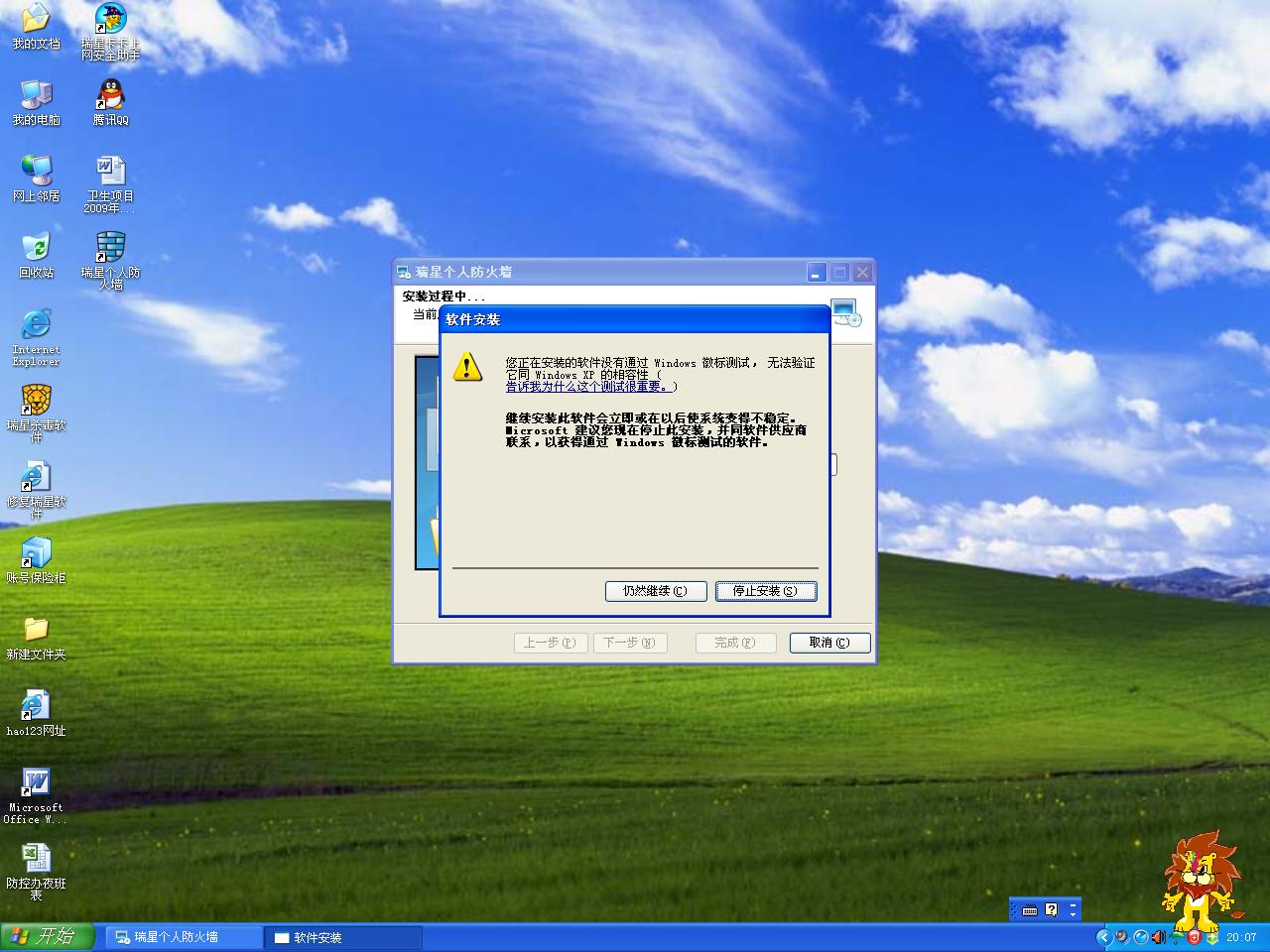 我的系统是Microsoft Window XP Home Edition 版本2002 Service Pack 3,在安装过程中提示:某系统文件将被修改,将影响系统的稳定性,忽略后方能继续安装完毕。但安装使用时反复提示,某系统文件被修改,影响系统稳定性,请插入光盘恢复原文件。如何解决?昨天,我的系统崩溃了,今天,重装了系统。