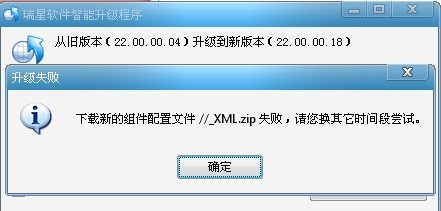 错误提示:下载新的组件配置文件//_xml.zip失败,请您换其他时间段尝试。