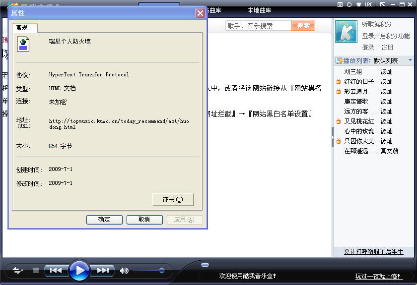 您好!我在使用瑞星2010版防火墙后,发现酷我音乐盒中的“今日推荐”页被瑞星防火墙拦截,如图1