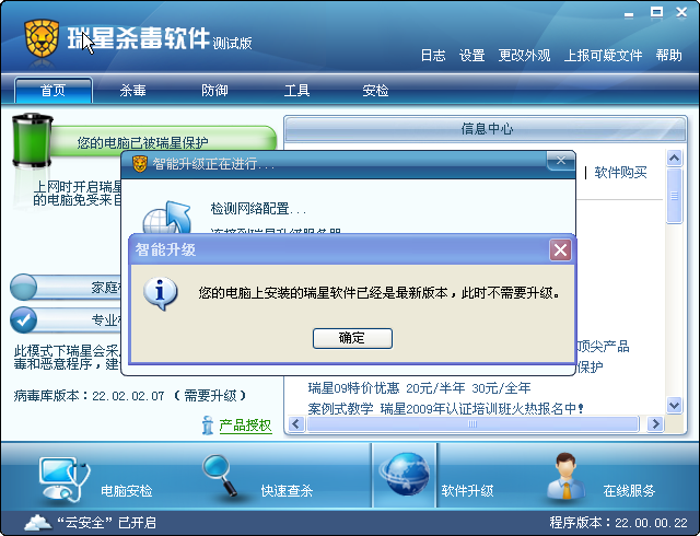 20:17左右,瑞星自动升级,当前我的版本如图1所示: