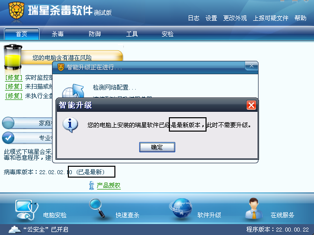 明明是最新版 本了 升级时显示已是最新版本可是 主界面的 病毒库版本却提示需要升级