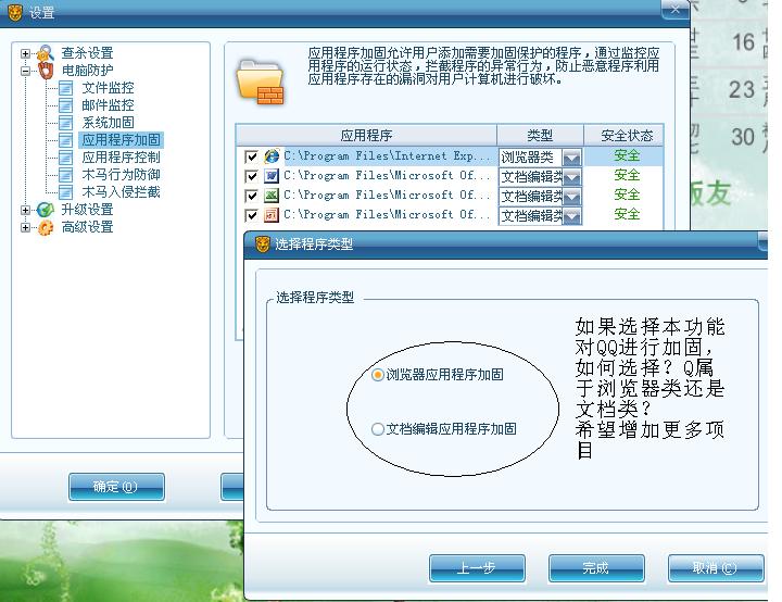 如果以后支持QQ可以加一项为即时通讯软件程序加固