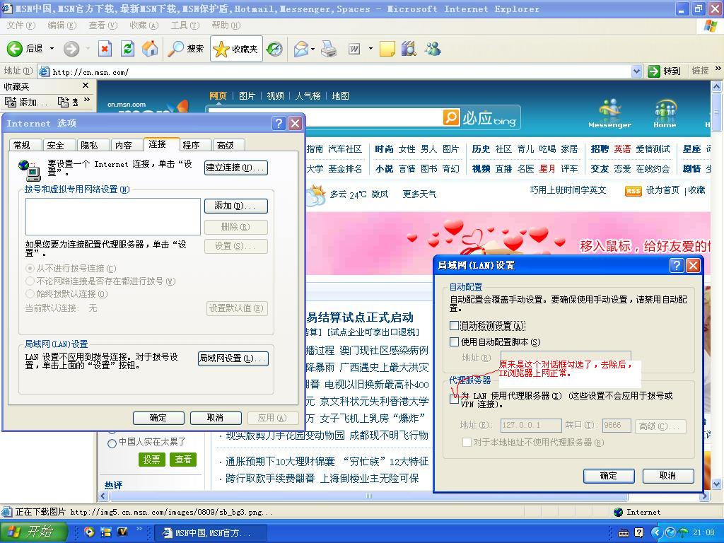 回复:IE浏览器不能上网,遨游可以。[已解决]