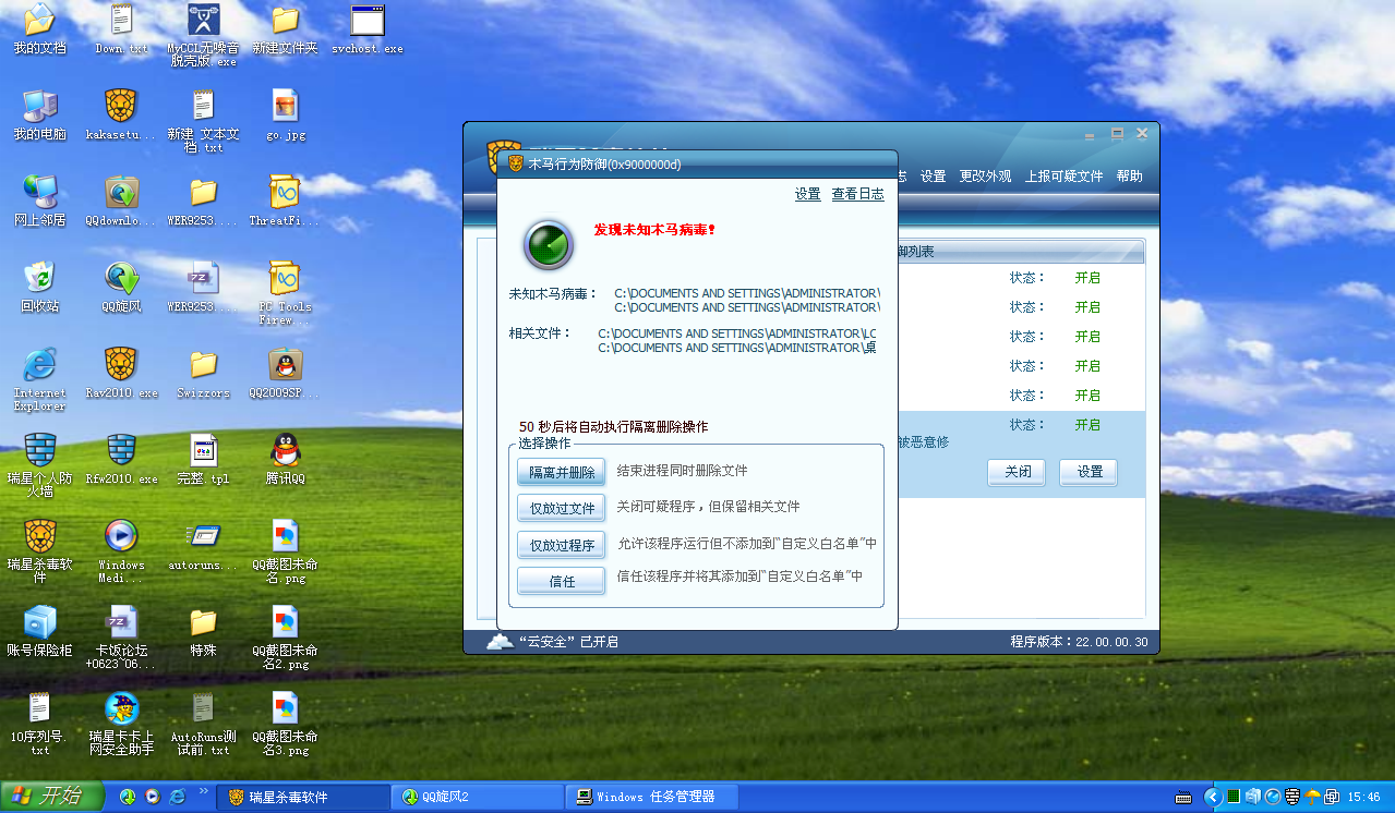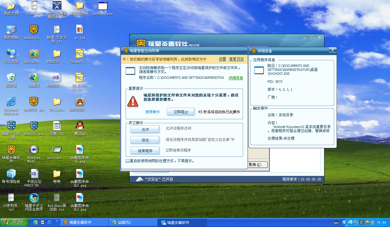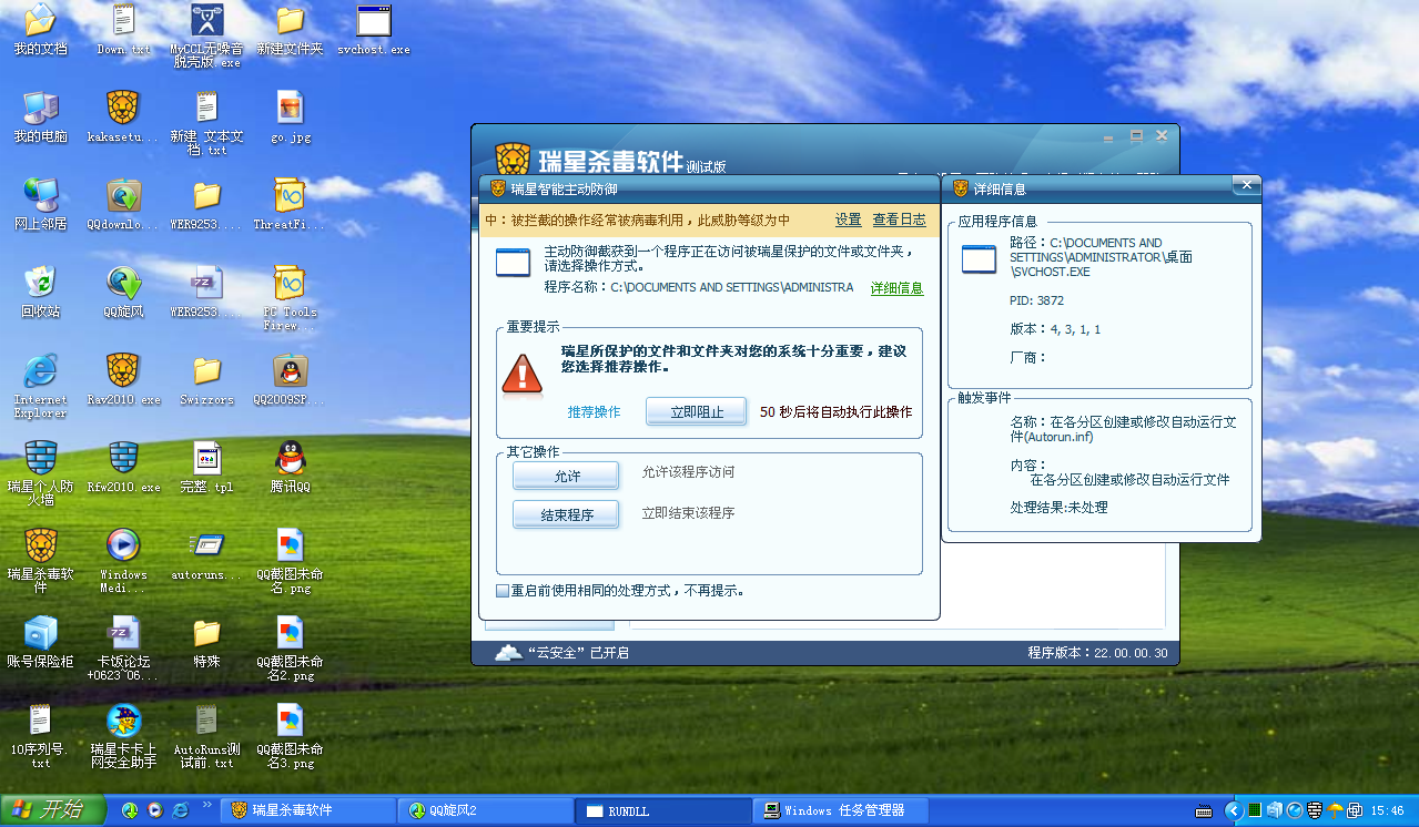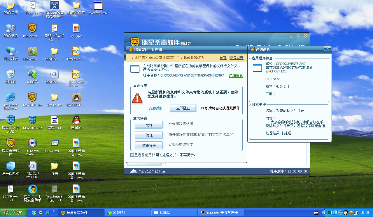 新版瑞星的主防在不崩溃的情况下还是不错的