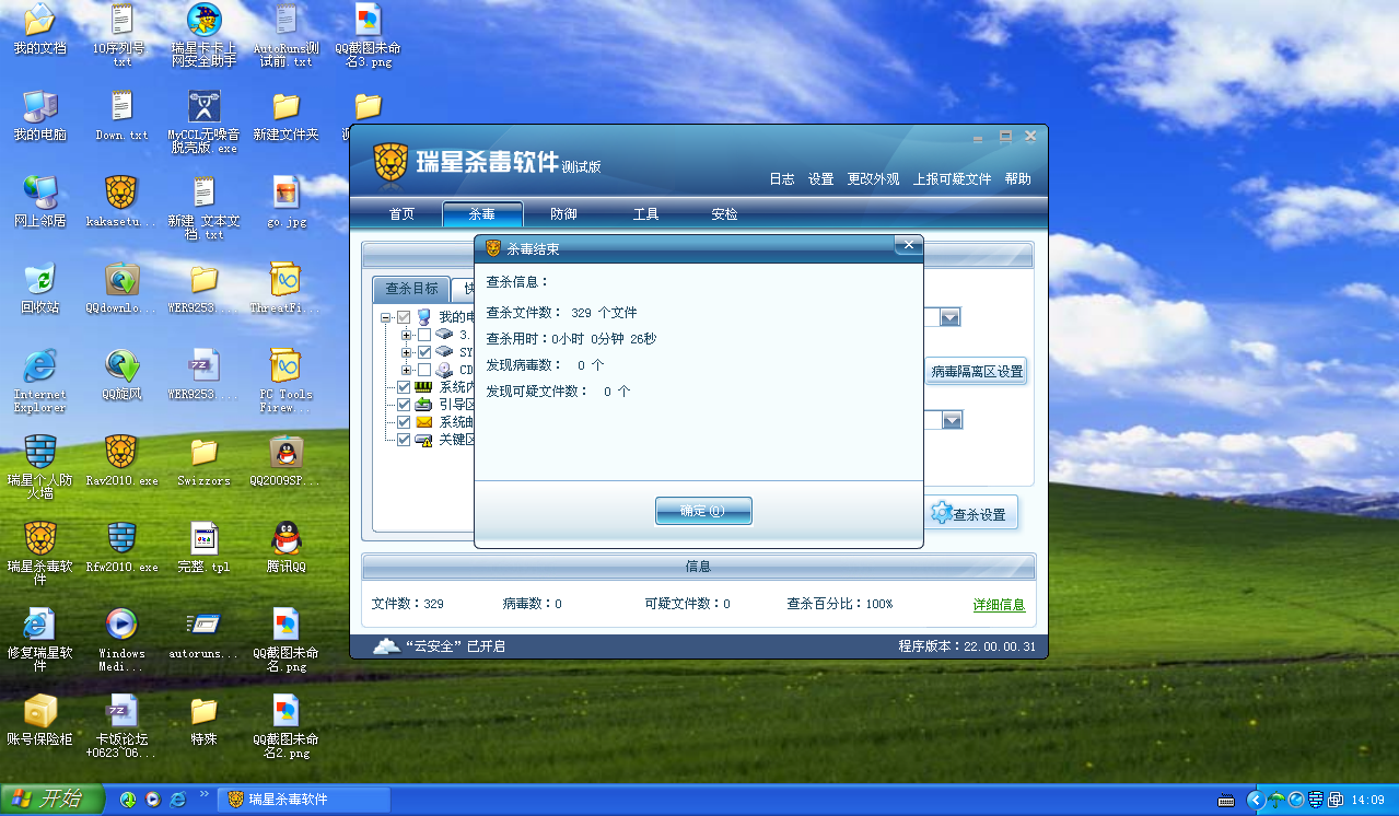 在扫描时间上瑞星略微弱一些。