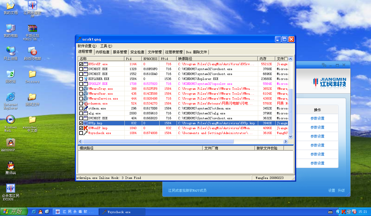 江民在自我保护方面不得不说做的很好,普通的ARK工具在允许加驱的情况下都不能随便结束江民。