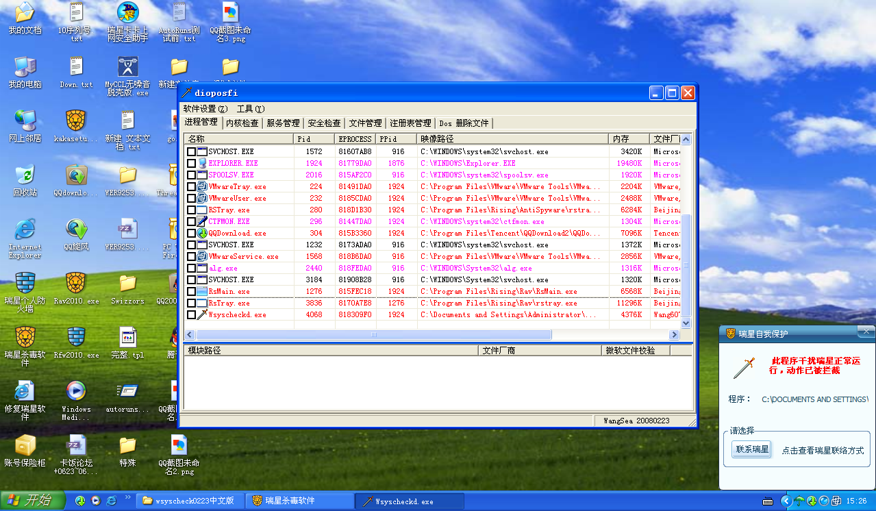 在不加驱的情况下基本上无法结束瑞星2010.但是加驱会有提示,所以自我保护的问题并不是很大,而且可以确保系统的稳定。