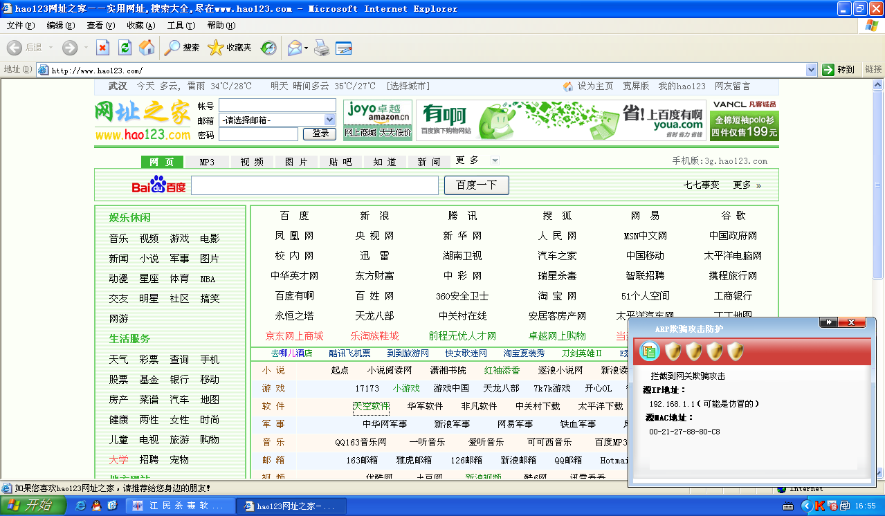 在此轮测试中江民成功拦截ARP欺骗