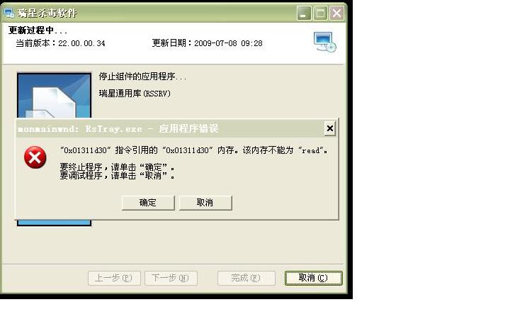 瑞星杀软在从22.00.00.33升级到22.00.00.34时报错,无法升级。