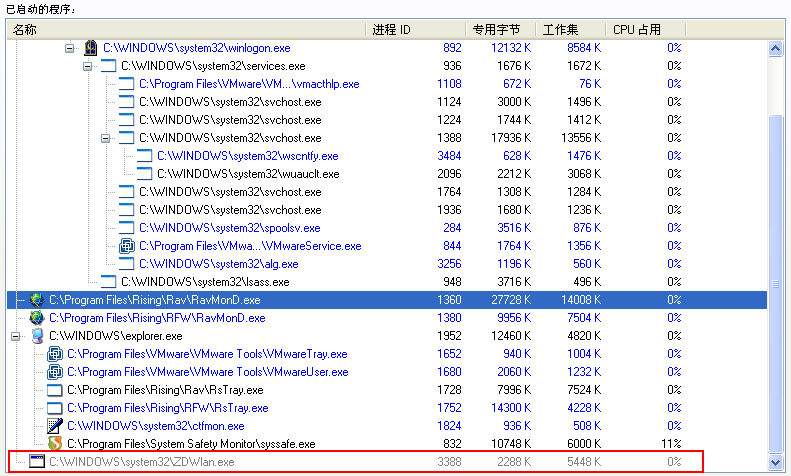 该病毒启动C:\WINDOWS\system32\ZDWlan.exe。