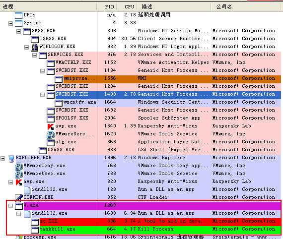 以下为,所有病毒运行后,进程图:
