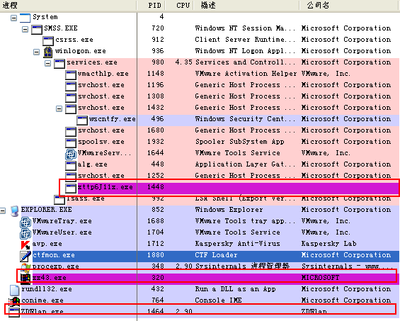 该病毒在后台启动C:\Program Files\Internet Explorer\IEXPLORE.EXE并修改其物理内存。