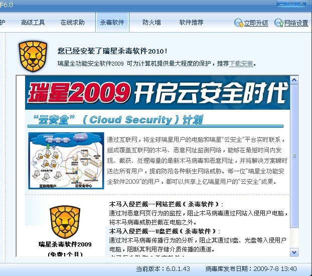 装了瑞星2010还推存用户使用瑞星2009,10版不是2009版的改进版本吗?