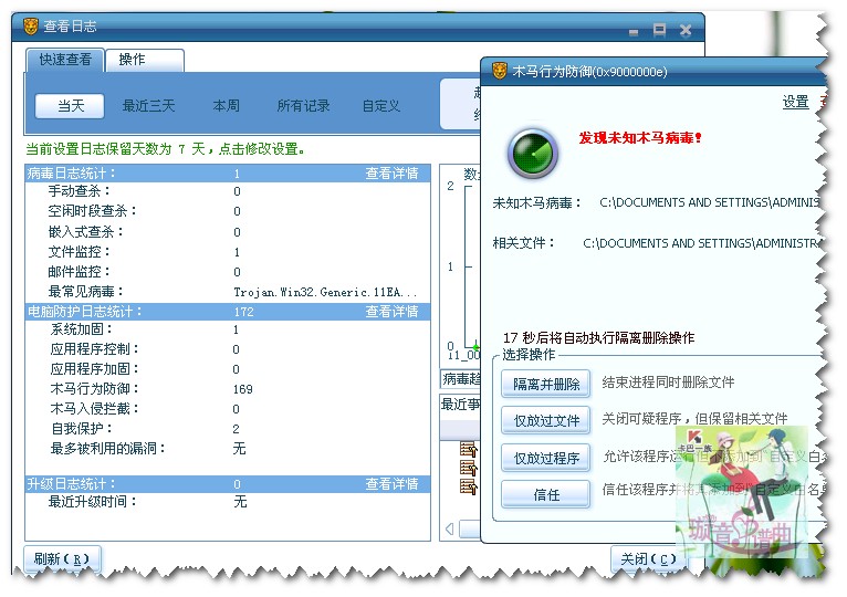 建议干脆木马行为防御提示也加一个应用到所有或者关机前执行此操作,否则点一辈子都点不完