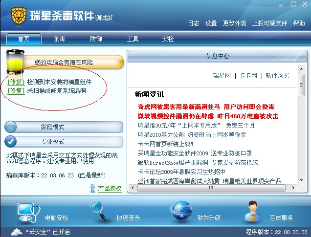 请您通过开始-程序-瑞星杀毒软件-添加删除组件-添加/删除,看是否安装完整组件。