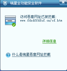瑞星已可以完全拦截利用此漏洞的挂马,详见下列截图: