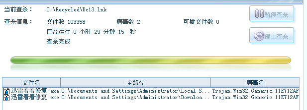 下面是10G硬盘查杀的时间半个小时,这个时间也有点慢了吧~