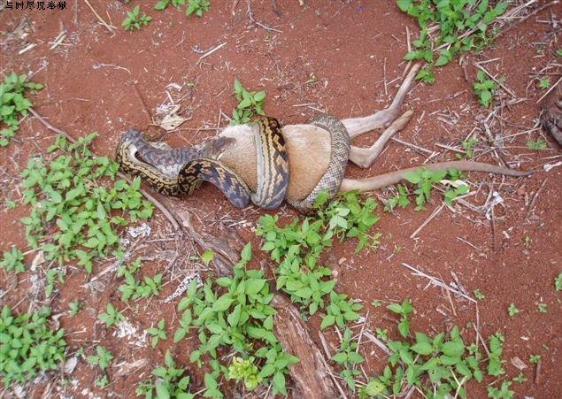恶心,吓人。。实拍蛇吞袋鼠过程。。嘴真大!!