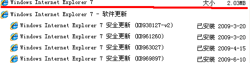 台式机上的IE 7安装情况(如图),比上面本本中的IE 7安装多了一项(用红色线标注):IE 7 大小 2.03M