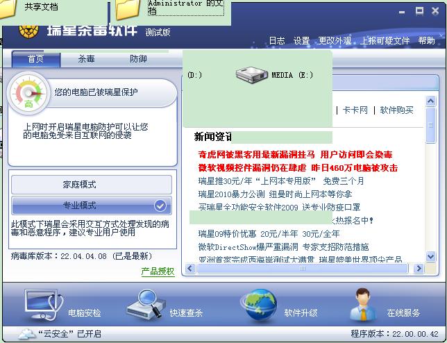 先随便打开一个软件或者我的电脑,然后再打开瑞星使用更改外观,你会发现,选择好外观类型点确定后,有时候就会成我上面上传图那样,瑞星跑到你打开画面的下面去了。你只有关掉你的那个界面或者最小化或者再次点击任务栏里的瑞星软件图标才会出现你更改后瑞星软件。