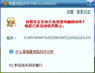 瑞星目前最新版对QQ三国程序运行时的误报如图: