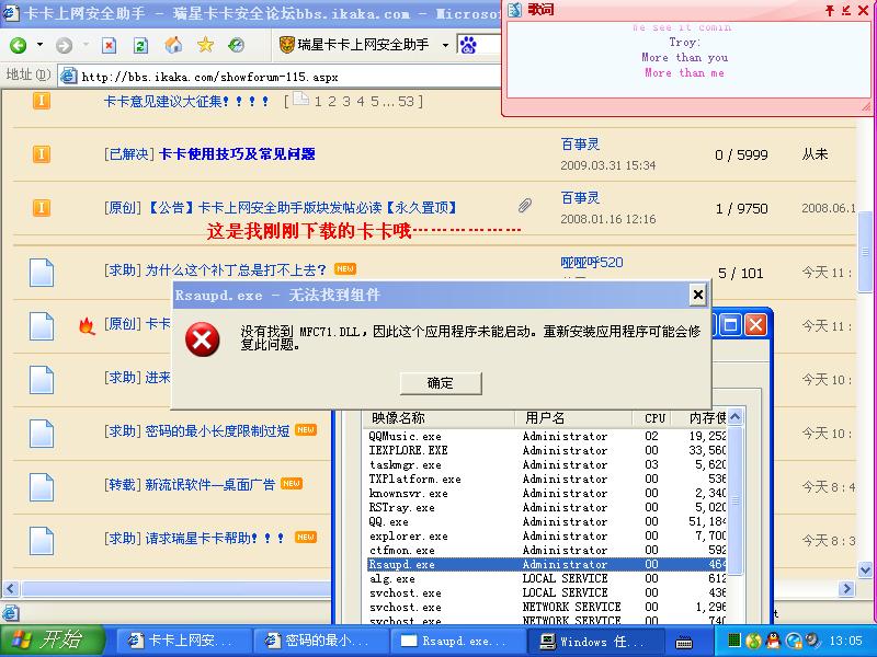 阿福的做法可能会使得:卡卡卸载的时候卸载不干净,因为mfc71.dll是我们后来复制进system32的,所以卸载程序不会删除它