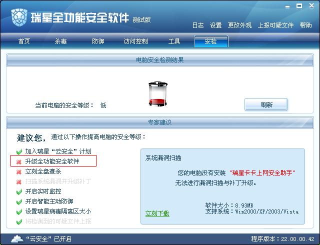 LZ的电脑是不能上网,还是只有瑞星软件无法升级