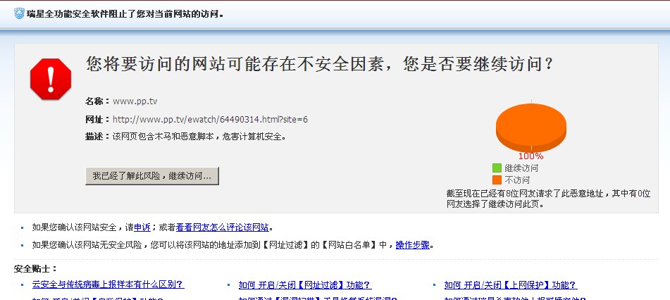 www.pp.tv网站被瑞星拦截