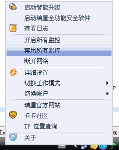 瑞星卡卡安全论坛企业产品讨论区瑞星2010新品体验挑战专区 右击小绿伞 关于 【禁用所有监控】 的建议